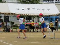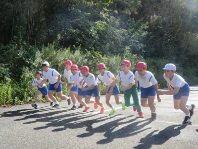 今日は,早朝からの雨の影響で,足元が滑りやすくなっています。ですが,児童は全力で走り抜け,