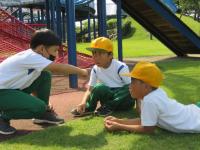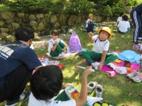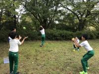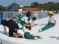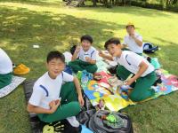 森林公園では,縦割り班に分かれてゲームを楽しんで盛り上がり,みんなで仲良く,協力している姿が見られました。