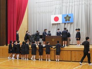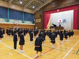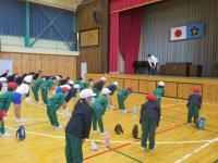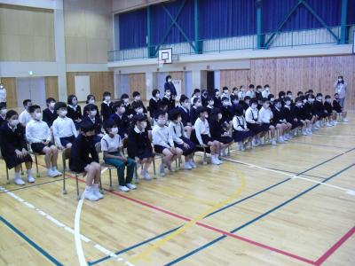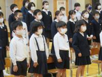 早朝から全校児童が体育館に集まり始業式を行いました。