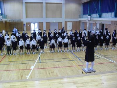 恒例の「ふるさと」を全校で合わせました。1,2,3,4年生は,メロディを歌い,5,6年生はハーモニー部分を歌いました。
