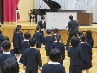 13:45 音楽集会が始まりました。少し緊張気味の子どもたちでしたが,練習通りの演奏を大勢の前で披露できました。あっぱれ!です。