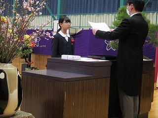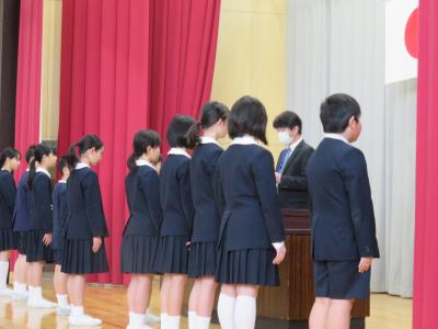 今日は、3学期の終業式で学年の修了式を行いました。1年間の締めくくりで節目の式を静粛に行いしました。