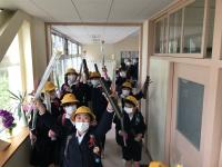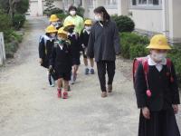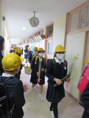 学校支援ボランティア思いやり隊の皆さんと一緒に集団下校の訓練をしました。