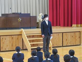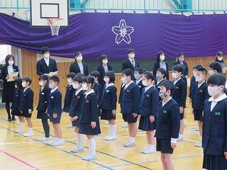最後に、学校長、生徒指導担当から休み中の過ごし方、次年度に向けてのお話がありました。児童は真剣に耳を傾け、