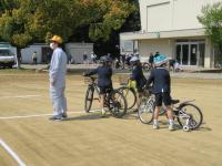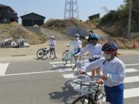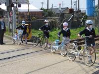 始めに,体育館で全体指導をし,その後,1,2年生はグラウンドでの歩行訓練,実際の横断歩道,踏切での実地訓練,3年生はグラウンドでの自転車教室,4,5,6年生は,実際の道路での自転車教習を行いました。