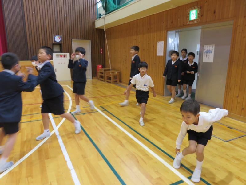 校内放送で「訓練、訓練、ただ今、ランチルームから火災が発生しました。児童の皆さんは、体育館へ避難して下さい。」と長休みにありました。抜き打ちの火災避難訓練です。