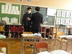 裏の渡り廊下から6年教室に不審者が侵入した,との想定で羽咋警察署から3人のおまわりさんに来ていただいて