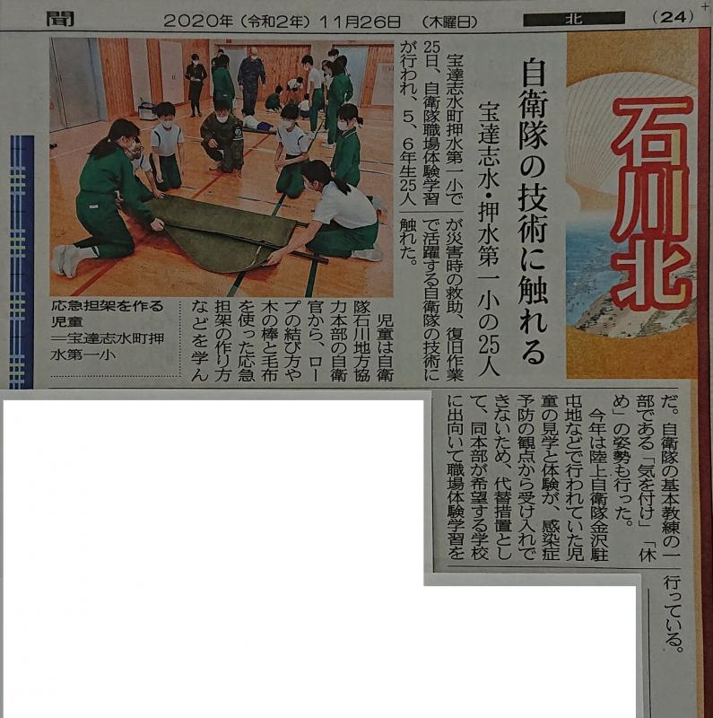昨日の自衛隊職場体験教室の様子が北國新聞朝刊に掲載されましたので紹介します。