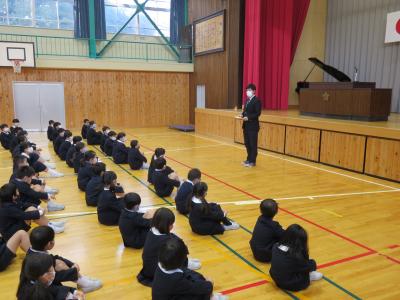 まずは、学校長から児童に次のようなお話をさせて頂きました。