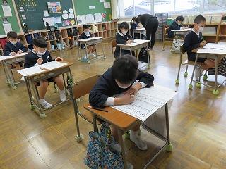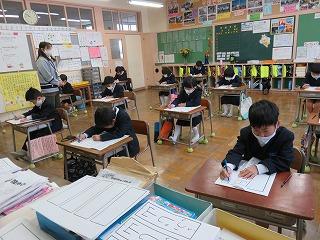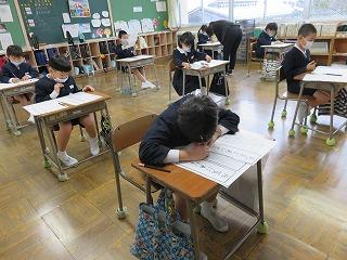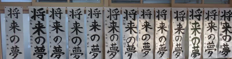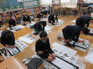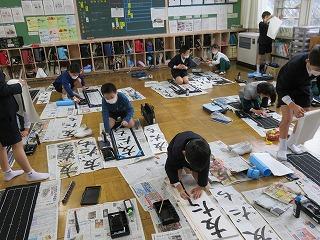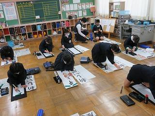 本日の2限目は,全校一斉の書き初めです。どの子も書の世界に没頭し,真剣に作品づくりに取りかかっていました。物音ひとつしない静寂な空間を子どもたちで自身で創造していました。