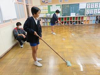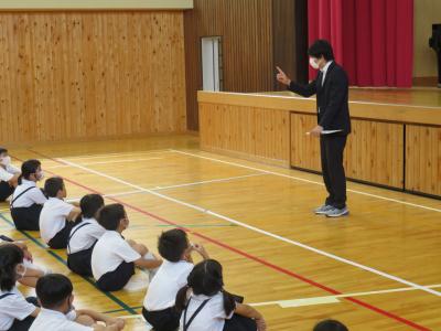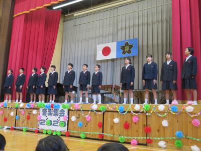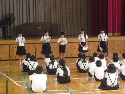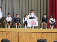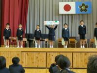 最後に,6年生河端君から4年生へお褒めの言葉のプレゼントがありました。