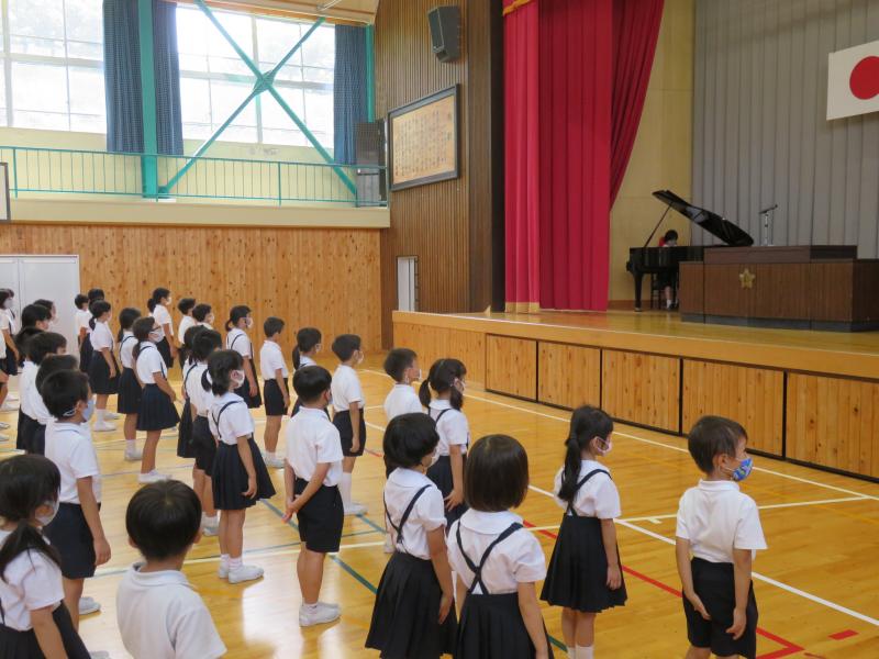 「1学期は新型コロナウイルス関連で皆さんには不便な思いをさせてしましました。しかし,児童の皆さんは,学校再開後は,いつもと同じように元気で学校生活を過ごすことができて,たいへんよかったです。」と述べたうえで,