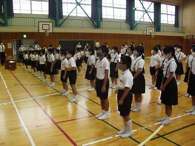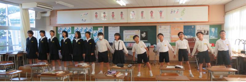今月の歌「いのちの歌」を全校で歌いました。新型コロナウイルスの影響で生じた閉塞感を吹き飛ばすような歌声でした。すこし感動しました。