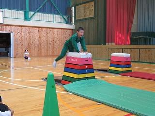器械運動校内発表会を午後一番で行いました。本来ならば,志雄小学校で町内5校が揃って行うのですが,今年度は例のコロナ騒ぎのため中止となりました。そので代替の活動として,校内で発表会を行いました。