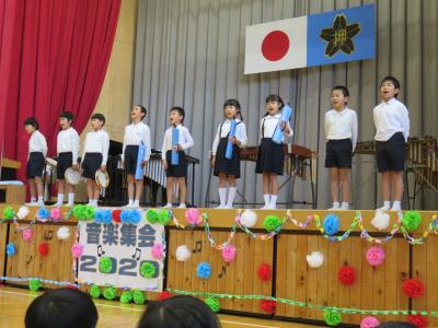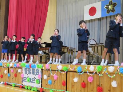 発表会では,一人一人が,練習の成果を十分に発揮し,全校児童からは大きな拍手をたくさんもらいました。以下はその様子です。