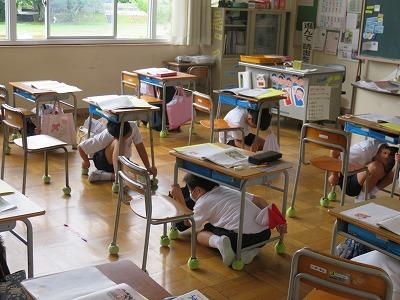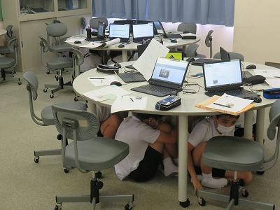 普通教室でも特別教室でも しっかりと机の下に避難できました。