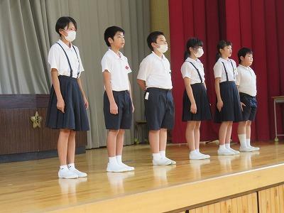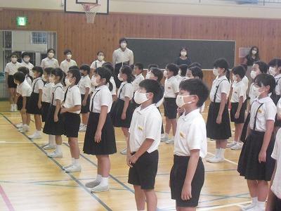 コロナ騒ぎでのびのびになっていた児童集会がようやく開催できるようになりました。