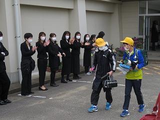 マスクを着けたままでしたが,体育館中響き渡るくらいの元気な歌声でした。一体感のある歌でした。