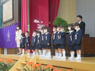 整然とした雰囲気にもきちんと対応できるすばらしい1年生でした。いよいよ明日から学校生活が始まります。