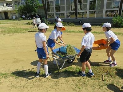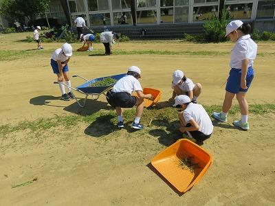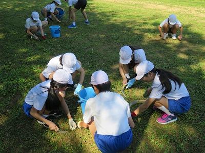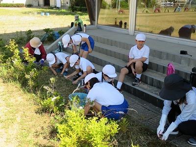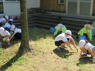 今回は,4年生,5年生,6年生の児童がボランティアの皆さんと一緒に除草作業をしました。どの子も一生懸命除草作業を行っていました。