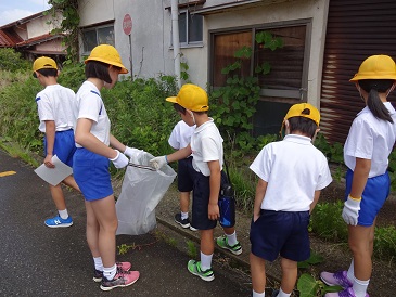 朝から小雨が降り、お天気が心配されてはいたのですが、活動が始まるとお天気も回復し、子どもたちは、「お」グループ、「し」グループ、「み」グループ、「ず」グループの4つの縦割り班ごとに地域へ向かいました。