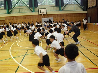 次に,子どもたちに対して犯罪の被害者にならないための基本的な技術や知識について指導をしていただきました。不審者は,決して不審者らしい服装や身なりではなく普通の格好で近寄ってくること,危険を感じたら防犯ベルを鳴らしたり,大きな声を出して逃げるなどして,自分の身は自分で守ることを教えてもらいました。