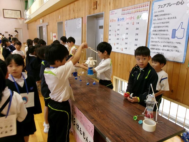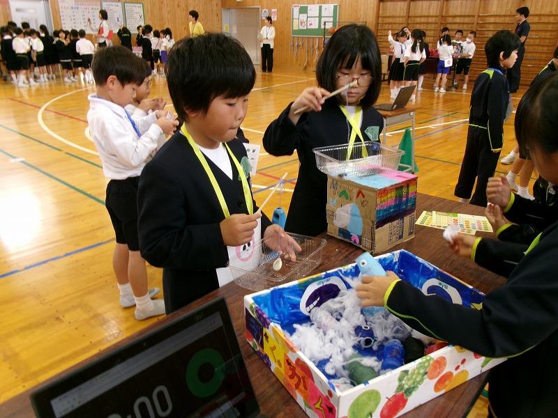 本校と相見小・宝達小の3校の2年生が、合同で「おもちゃランド」を開催しました。身近にあるものを利用して「動くおもちゃ」を作り、そのおもちゃを紹介したり、一緒に遊んだりする学習です。今年度は、3校の1年生も招待して、一緒に楽しみました。子どもたちは、この日のために、おもちゃ作りやお店の準備など、協力して取り組んできました。1年生や他校の児童に遊び方をわかりやすく説明したり、遊び方のきまりを守って他校の児童とも楽しく交流したりすることができました。