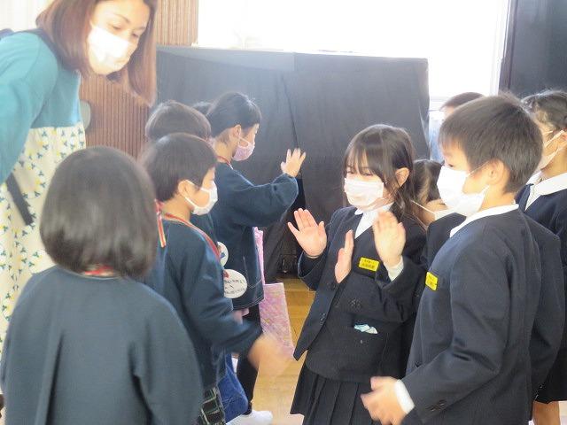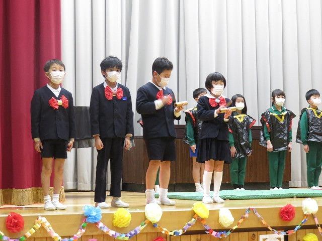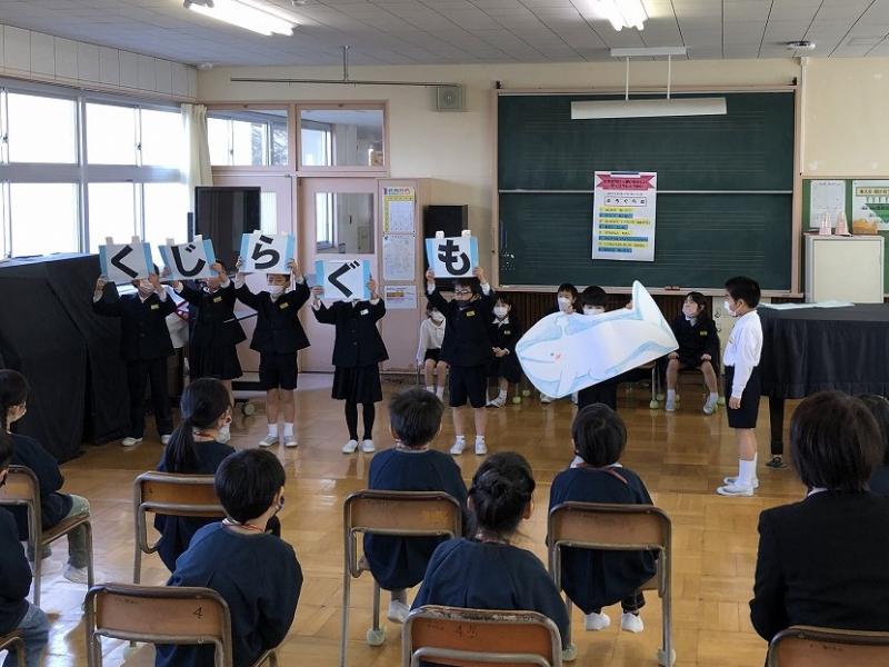 2月9日(木)に,来年度の新1年生である年長さんたちを招いて,現1年生が「ともだちいっぱいたのしいがっこうしゅうかい」を開催しました。3学期初めから,招待状やプレゼントを作ったり,集会で発表する劇を練習したりとたくさんの準備を進めてきました。1年生は,最後まで集中して準備に取り組み,本番もやる気満々の表情で,先輩らしくとても頼もしかったです。