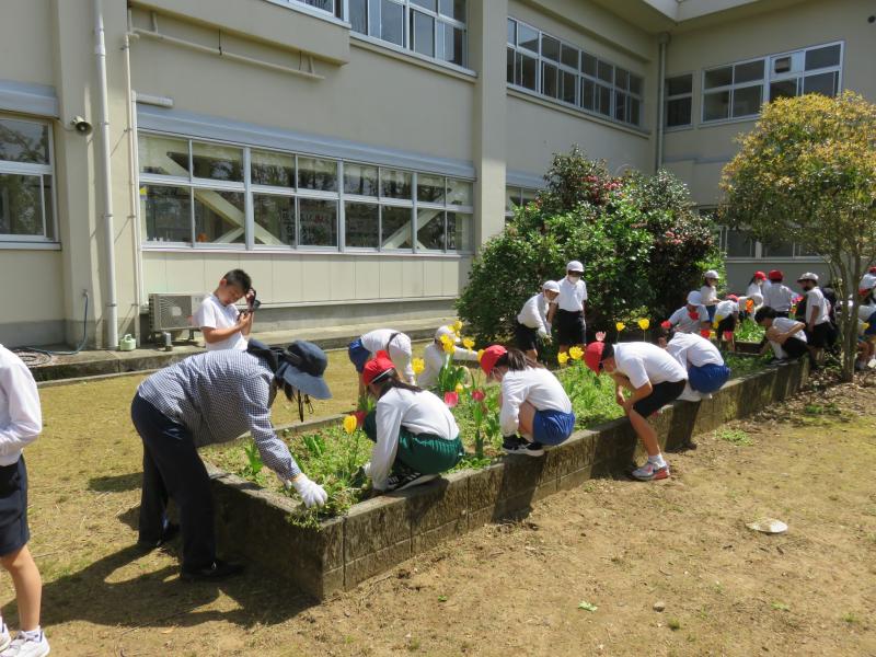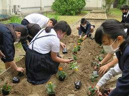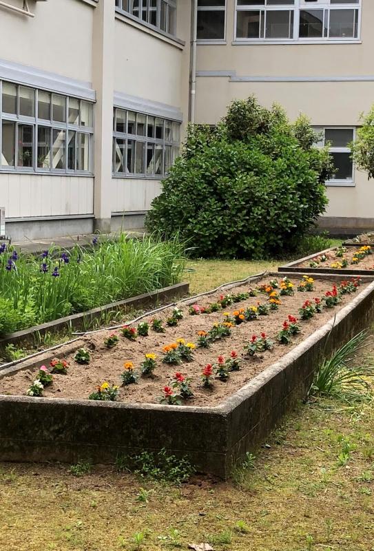 その後,5月に各学年で時間を設定して花苗を植えていきました。