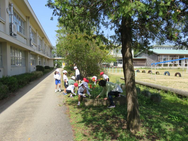 全校で校庭の花壇を整備しました
