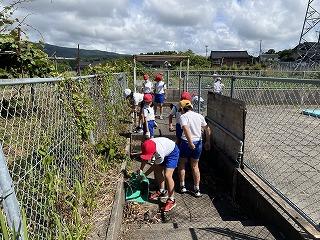 まず6月8日に3・4年生がプールサイドの草むしりをしました。