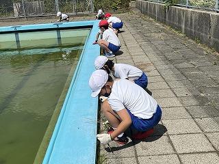 それに向けてプール掃除をしました。