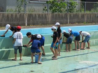 翌9日は5・6年生がプール内の掃除です。