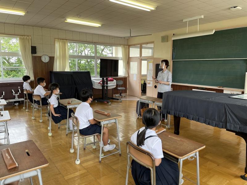 例年,リコーダーの入門学年となる3年生を対象としていますが,コロナ禍により昨年度開催できなかったこともあり,今年度は常時換気の中,児童相互の距離を十分にとって,4年生も一緒に受講しました。