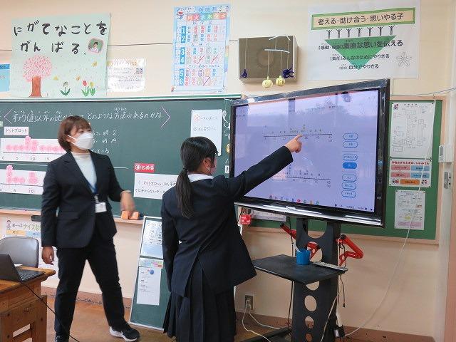 ひまわり学級 算数「データの特ちょうを調べて判断しよう」の授業です。