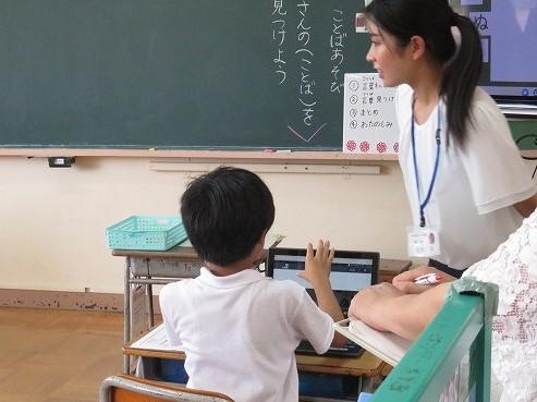 7月6日,すみれ学級担任の松本教諭が研究授業を行いました。国語科「たのしいな,ことばあそび」の授業です。