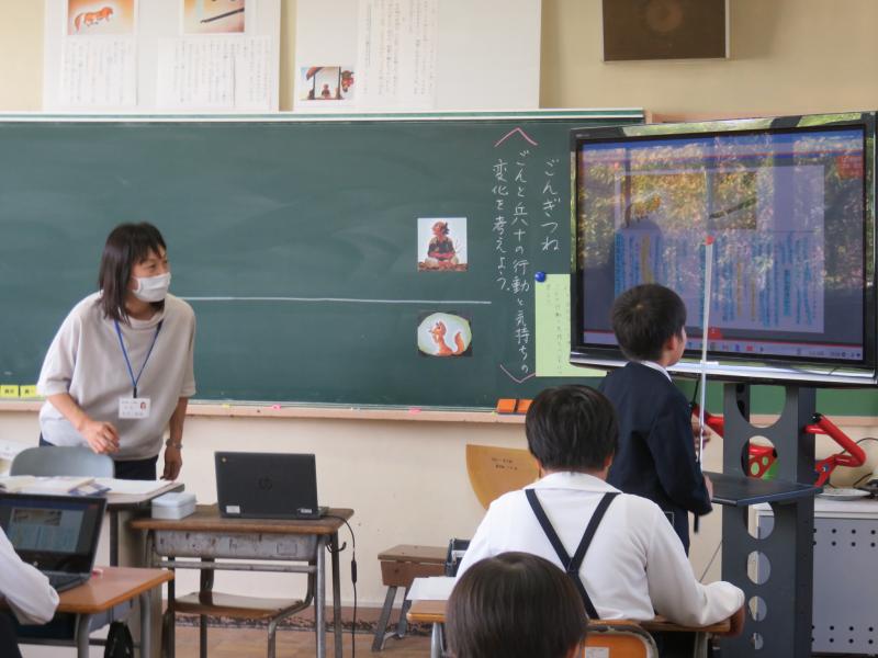 10月12日、4年担任の茶木教諭が研究授業を行いました。国語科「ごんぎつね ~気持ちの変化を読み、考えたことを話し合おう~」の授業です。