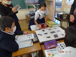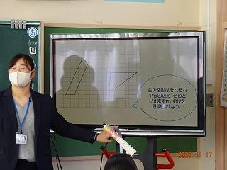 算数科の四角形で,平行四辺形と台形の性質をつかむことが授業のねらいでしたが,児童も先生も一生懸命に取り組み,とても充実した1コマの授業でした。