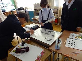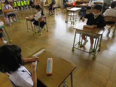 3密をさけるため,ペア間のスペース,マスク着用,相手の教具は触らないこと等に気を付けて行いました。本校のペア学習は,しばらくこのようにして行います。