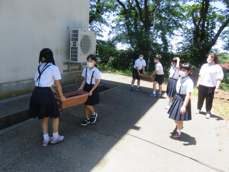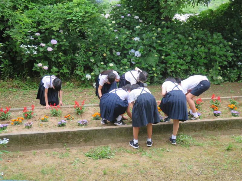 今日の朝,出勤すると,6年生7,8名が,手をどらだらけにし,足を蚊に刺されることを避けつつ,今度は他学年の花壇をきれいにしていました。今日は,学級担任が都合で学校にいません。指導を受けなくても自分たちだけで,奉仕活動ができる事に感心いたしました。とても素晴らしい学年だと思いました。