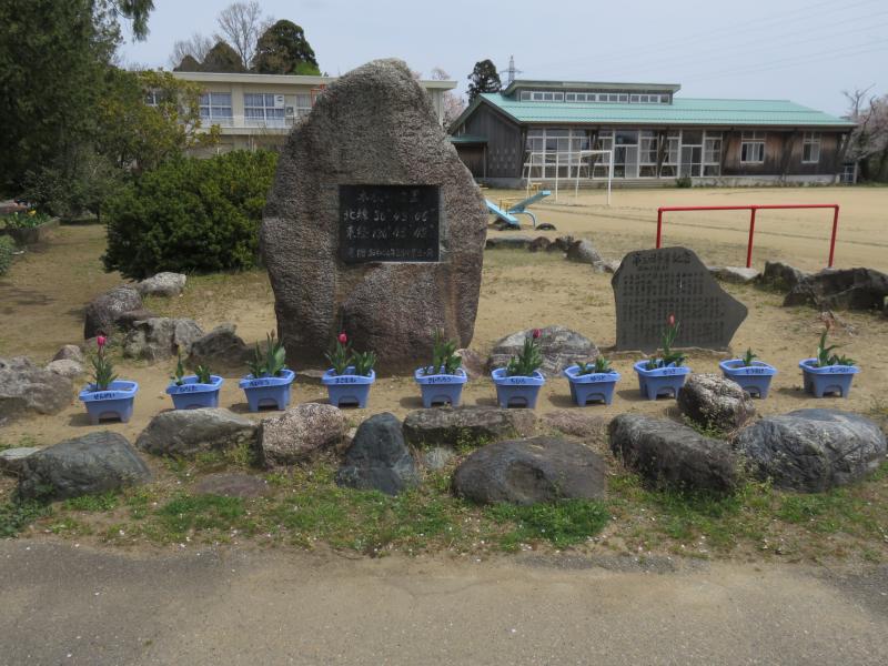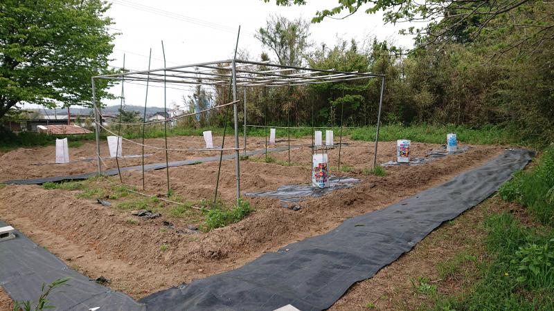 みなさんの畑に1本ずつ、夏になったらおいしいものになる、そんな苗を植えました。全校のみなさんで世話できる日がはやくやってくるといいなと思います。