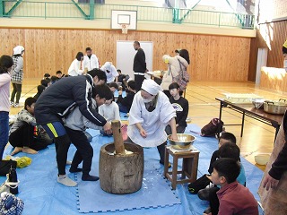 3月の卒業式に使うコサージュを地元の方の指導の下,親子で1個つくります。長年本校で勤務している職員によると,この活動は,少なくとも7年以上も前から続いているそうです。