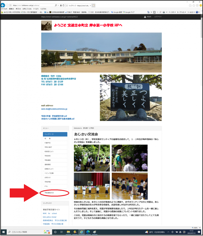 メニューの一番下に当該年度の「学級通信」が表示されるので,