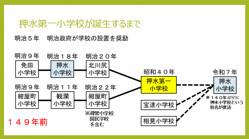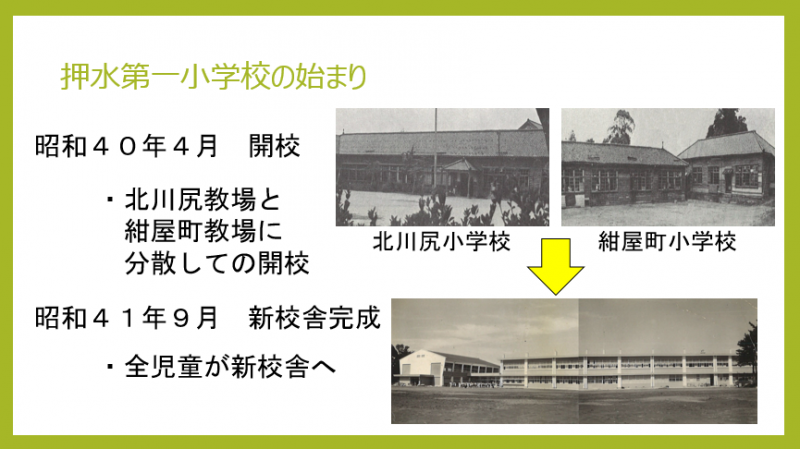 まずは、押水第一小学校が誕生するまでのことをお話したいと思います。