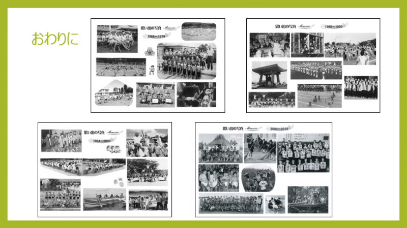 それから約60年後の今年度の5月に、ぼくたちは「最後の運動会」をしましたが、「最初の運動会」と同じように、たくさんの地域の方に見守られ、とても思い出深い運動会になりました。ありがとうございました。