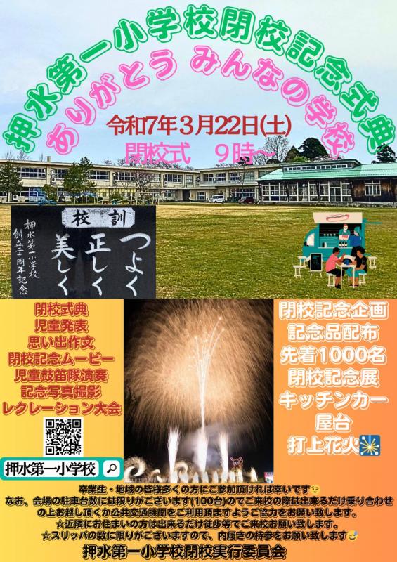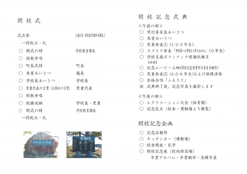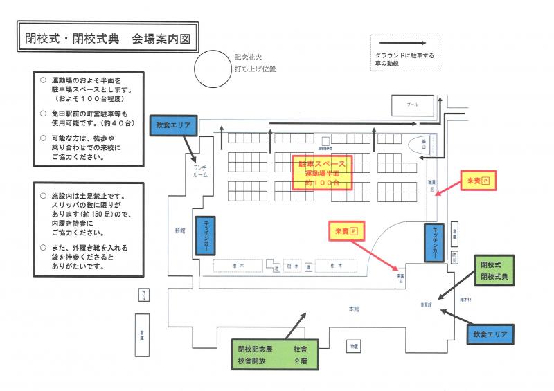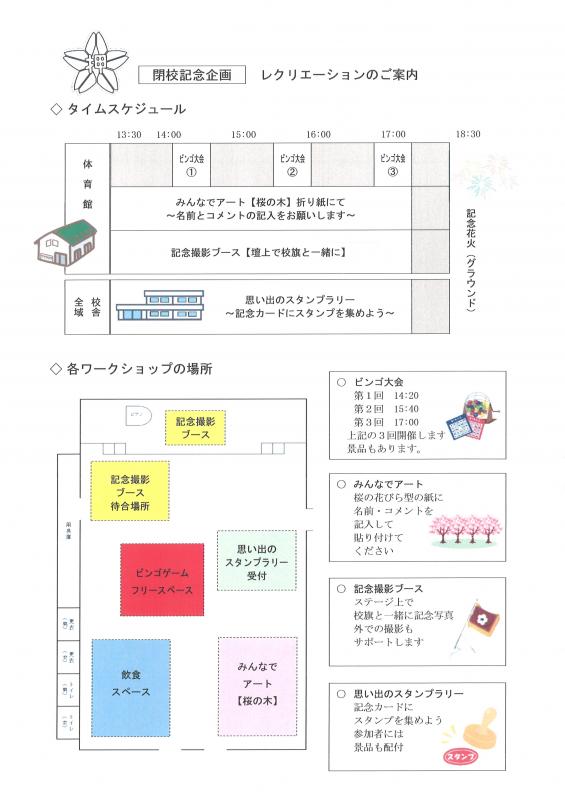 午前は閉校式・閉校記念式典で、午後がレクリエーション大会・校舎開放・記念花火となります。