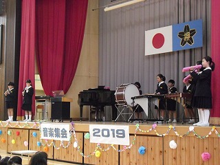 4年生音楽集会 2019年11月1日 15時53分 [宝達志水町立押水第一小学校] 4年生の演奏歌「赤い屋根の家」合奏「チキチキバンバン」ゆったりとした曲とリズミカルな曲,まったく曲想の違う曲を上手に演奏できました。