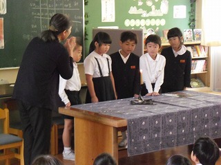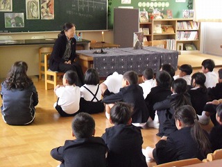1,2,3年生 お話会 2019年11月6日 11時07分 [宝達志水町立押水第一小学校] 11月6日(水) 今日は,かほく市から やまんばお話会の細川律子先生をお迎えして,低学年向けのお話をしていただきました。子どもたちは自然とお話の世界に引き込まれ,ストーリーの内容に合わせて一喜一憂の表情を浮かべつつ聞き入っていました。 やはり,本物のお話はすごいですね。 最後は,お話の火をお誕生月の児童が消して終了しました。