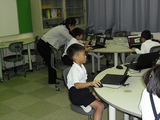 1年生 ICT教室(パソコン) 2019年11月18日 14時45分 [宝達志水町立押水第一小学校] 11月18日(月)5限1年生が,パソコンを使った授業をICTサポーター中島先生の指導の下,行いました。いろいろな絵を動かしながらパソコン操作を学んでいました。とても楽しそうでした。