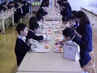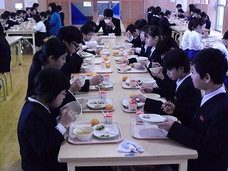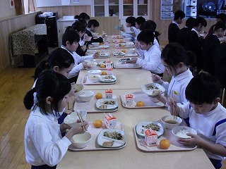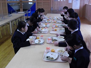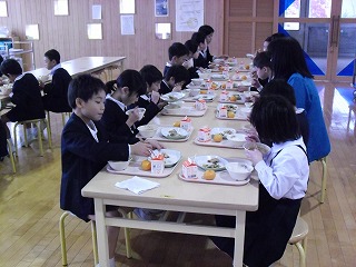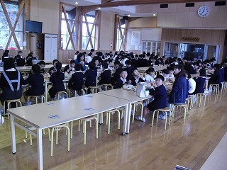 給食の風景 2019年11月19日 13時00分 [宝達志水町立押水第一小学校] 11月19日(火)今日は,給食の様子を掲載いたします。1年生2年生3年生4年生5年生6年生どの学年も食事のマナーを守って静かに食べています。全学年